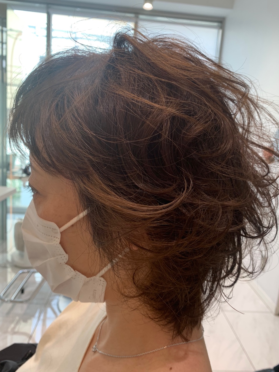 こんな丸いフォルムのパーマスタイルいかがでしょう。。。お手入れも簡単です。乾かして、ムースワックスやバームでクシャクシャとするだけです。