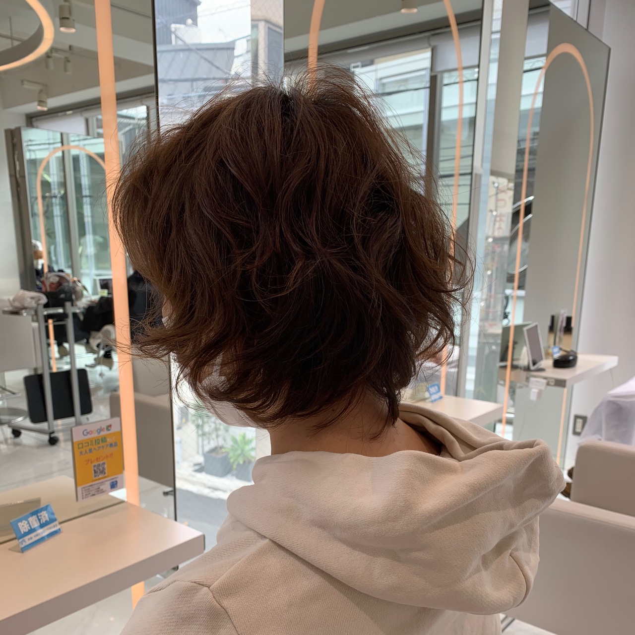 1週間前にご来店いただき、カット&パーマを施術。長さも少し切らせていただき春らしいデザインにさせていただきました。