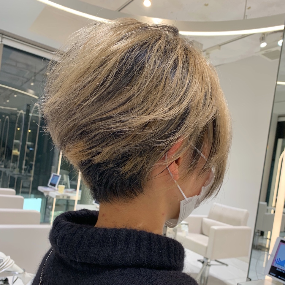 - ハイトーンにローライトでアクセントを効かせたカッコイイ系ショート。